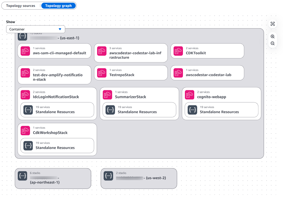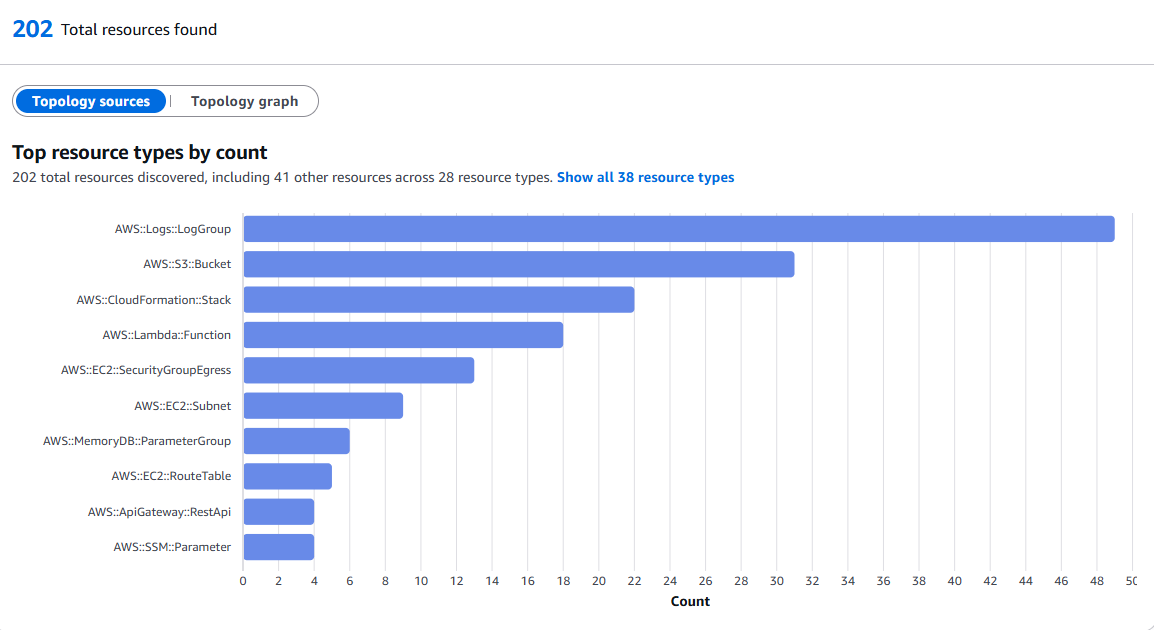 スペース作成完了と同時にトポロジーの作成が開始します。先ほど作成したプライマリアカウントロールを利用してAWSアカウントのリソースを読み取ります。