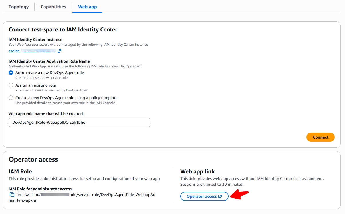 基本はIdentity Centerを利用し、オペレーターアクセスは、DevOps Agent自体の検証や、Identity Center経由でログイン不可となった場合の代替手段として利用するようです。