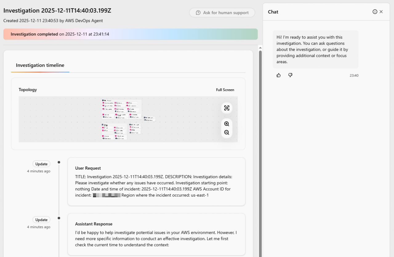 DevOps Agent は、運用とワークロードに関するこの深い理解を活用して、MTTR を短縮し、運用の卓越性を高めます。