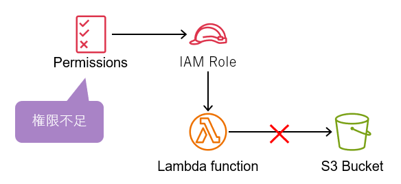 仕方ないので、S3バケットをリストアップするLambda関数を作成し、Lambda用ロールにS3へのアクセス権限が無い状態にして、関数実行しました。
