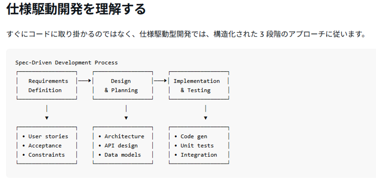 - 仕様を通じてAIと通信することでソフトウェア設計を反復処理できる。また、実際に動作するアプリケーションを迅速にユーザーに提供してフィードバックを得ることで、ソフトウェアの機能の反復処理も行える。