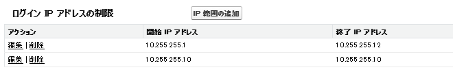 プロファイルレベルのログインIP範囲(各プロファイル)