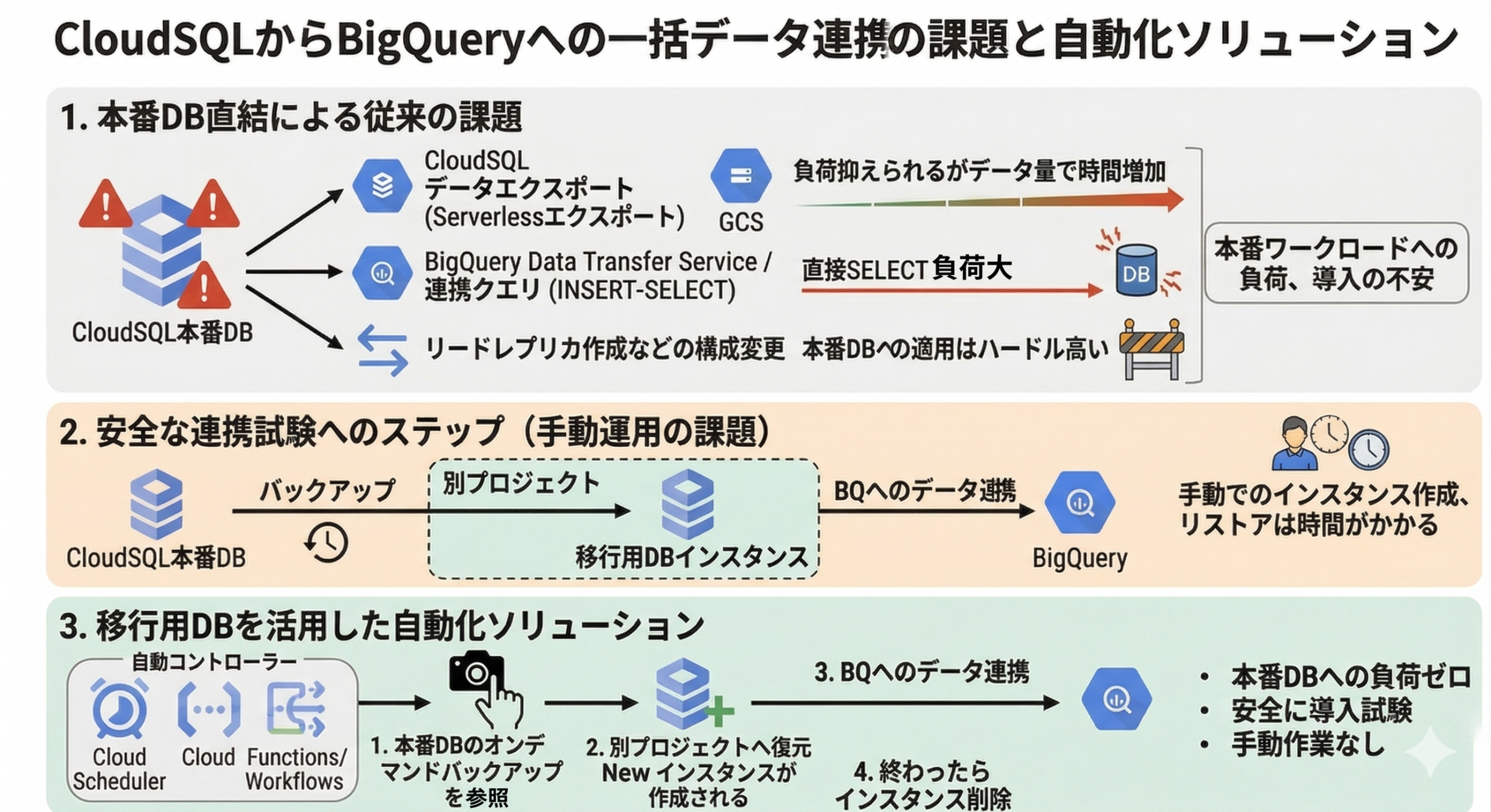 【Google Cloud】本番影響を最小限に!バックアップから作る使い捨てCloud SQL → BigQuery連携基盤